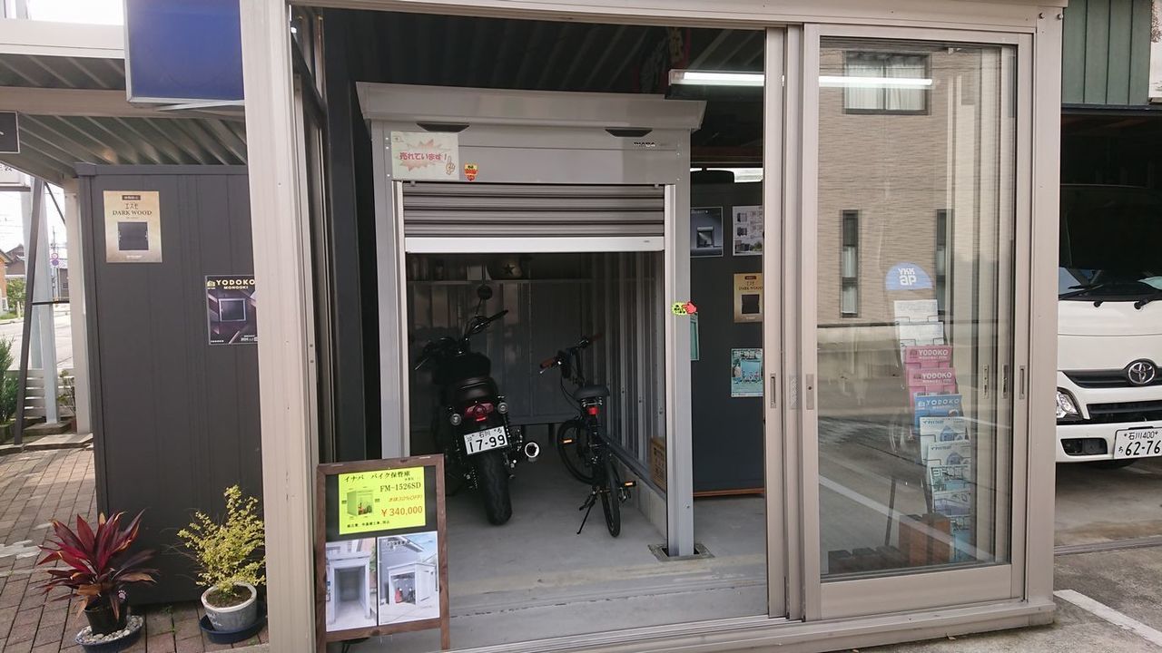 もちろんバイクだけでなく、自転車、大型機械の収納もできます。
